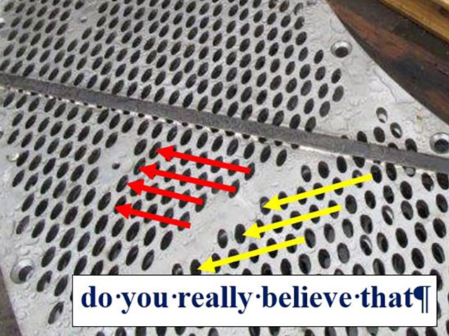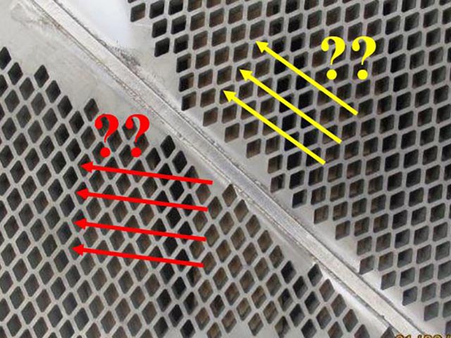Alleen ronde gaten hebben zin: de omtrek van elke zeefperforatie kan beschouwd worden als een snijkant. En die snijkanten zullen plastic afval en onopgelost papier versnipperen: de figuur met de geringste omtrek (of snijkant) per eenheid oppervlakte is de cirkel.